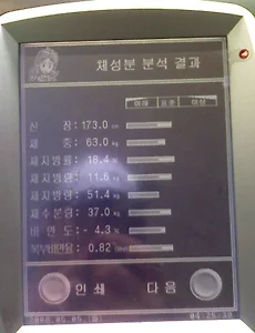 측정1 태어나서 처음으로 체지방 측정을 해봤어요~! 전부터 한번 해보고 싶었는데 어제 드디어 체지방 측정을 했습니다. 신장 : 173 cm 체중 : 63kg 체지방률 : 18.4% 체지방량 : 11.6kg 제지방량 : 51.4kg 체수분량 : 37kg 비만도 : -4.3% 복무비만율 : 0.82 ?? 이건 체중이 뭘로 되어있나를 보여주나 보네요 ^^ 체지방률 : 18.4% 체질량지수 : 21 표준체중 : 65.8kg (체중 미달이군요 ㅋㅋ) 신체연령 : 30세 (31살이니 비슷한듯...) 한 반년후에 또 재보고 싶군요 ^^ 체지방률 : 18.4% ---> 15% 수준을 유지 제지방량 : 51.4 kg ---> 근력운동위주로 제지방량을 증가 복무비만율 : 0.82 ---> 조금 더 신경~! 2008. 5. 18. 이전 1 다음